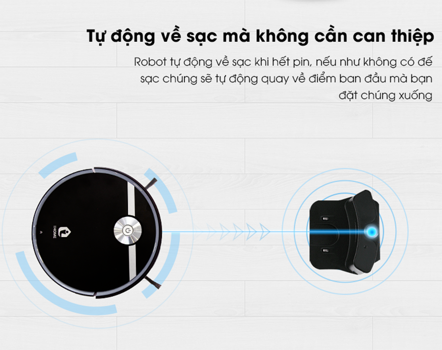 Khi gần hết pin hoặc hoàn thành xong công việc robot sẽ tự động quay về đế sạc.