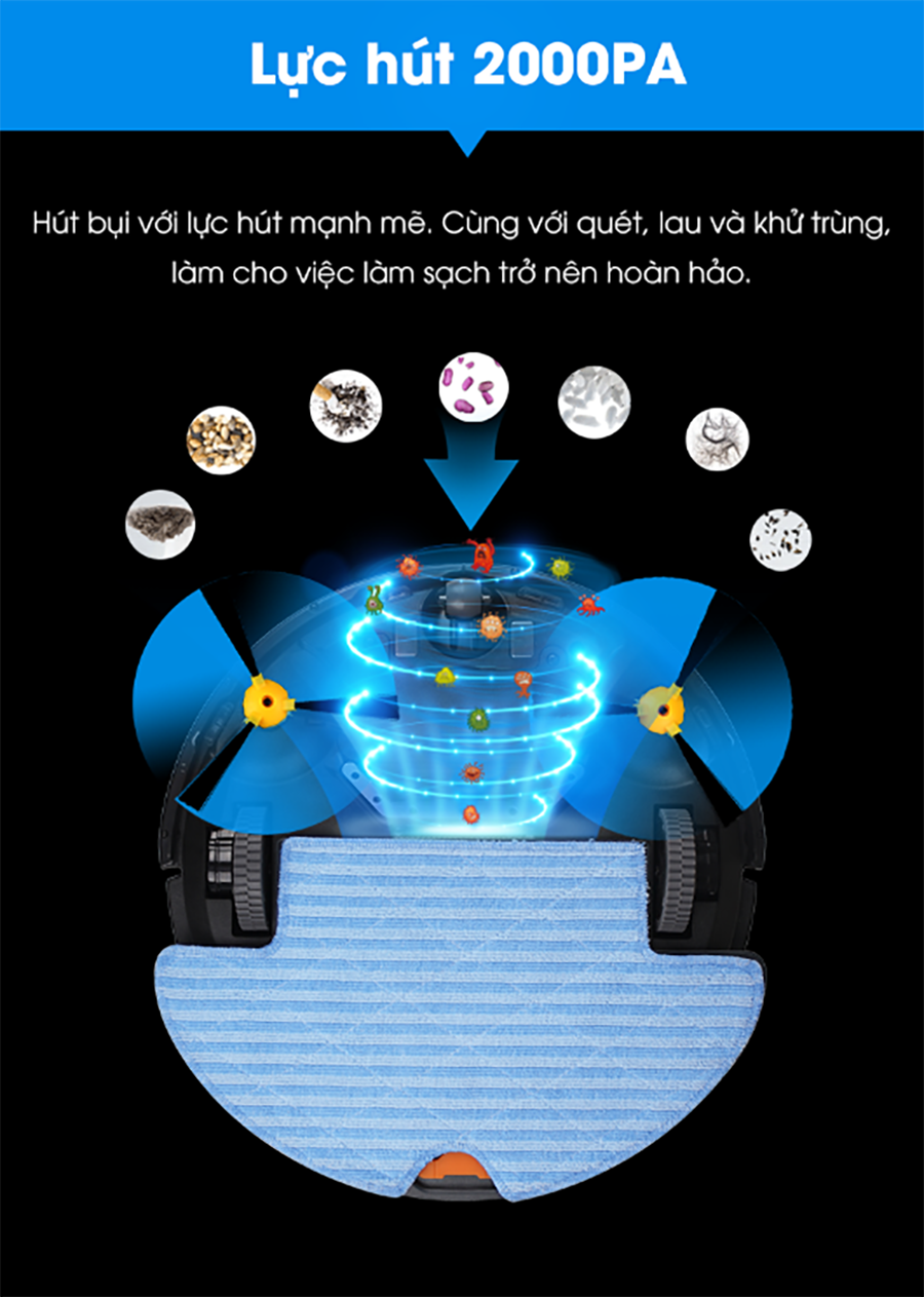 - Lực hút mạnh mẽ lên đến 2000 PA